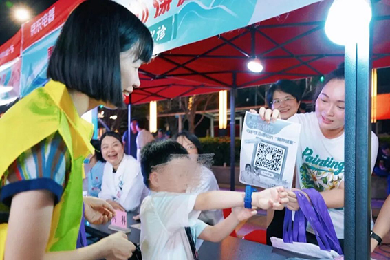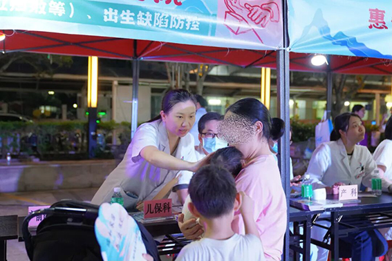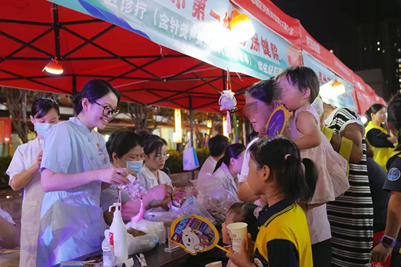 夜幕降临,在金湖社区瑞和家园广场,多家医疗机构的义诊摊位上,大家早已准备就绪,来自惠州市第一妇幼保健院各党支部派出的儿科、妇科、中医科、儿保科、内科等领域的专家更是早已等候。义诊开始后,医护志愿者们针对不同年龄段、不同需求的市民提供专业的医疗及咨询服务;中医科的贴敷、理疗等服务深受群众喜爱;药剂科党支部自制的养生、养颜等功效的中医奶茶,为活动增添了一抹独特的亮色;现场穿着“黄马甲”的志愿者们在维持秩序、派发健康宣传册等,大家各司其职,团结协作,让活动现场井然有序。