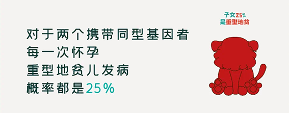地中海贫血属于常染色体隐性遗传病,如果夫妻双方均为携带者,每次生育就有1/4的概率生下中重度地贫患儿。