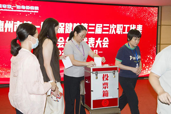 9月18日下午,惠州市第一妇幼保健院第三届三次“双代会”在医院门诊部四楼大会议室举行。来自医院各部办、科室的代表共90人参加会议。