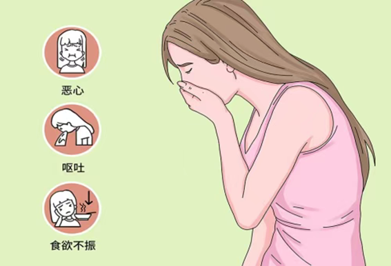 妊娠剧吐:表现为持续、剧烈的恶心呕吐,一天中任何时间都可能发生,严重到无法进食任何食物和水。会导致孕妇体重显著下降(超过孕前体重的5%)、脱水、电解质紊乱甚至出现酸中毒,必须接受治疗。