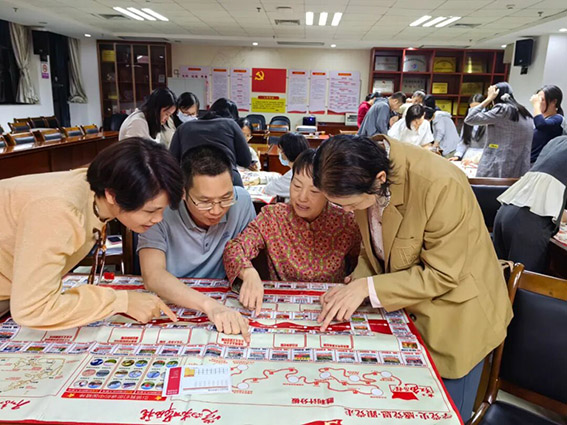 活动开始,在赵兴刚老师的细致引导下,全体党员分成多个小组。大家围绕精心设计的《百年党史》沙盘推演模型,开启了一场沉浸式的“党史回溯之旅”。赵老师带领党员们“穿越”回不同历史阶段,在情景推演中深入剖析历史事件背后的逻辑,让大家对党史的理解不再停留在表面。党员们积极参与讨论,思想的碰撞让大家对历史发展规律有了更深刻地认知,也进一步明确了新时代党员肩负的使命与担当。