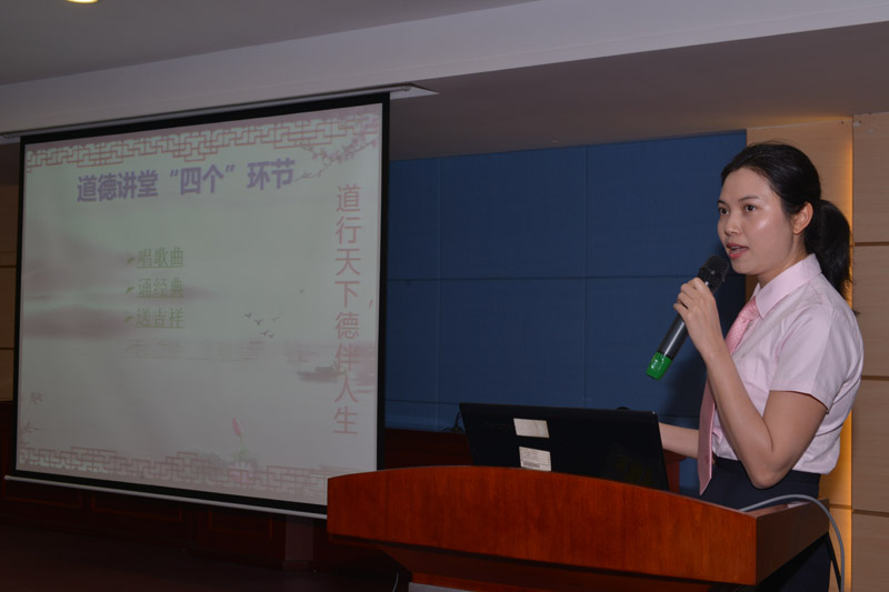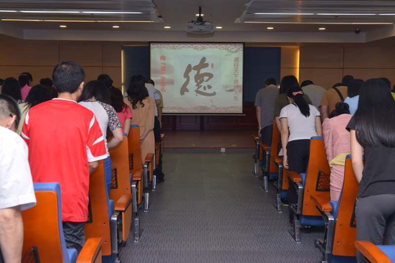 本次活动分为“道德讲堂”与“坚守社会主义核心价值观》两部分。以 “弘扬传统道德”为主题,由科教科副主任谭秀华担任宣讲员的“道德讲堂”在与会人员合唱《三德歌》中拉开帷幕,随后全体人员一起朗诵一段《道德经》,从中领悟道德经典语录的精髓,感受道德的花香,重温仁爱的美德。为了让大家能够在茶余饭后增添一道精神食粮,在忙碌工作之余感悟道德的力量,医院向每位参会人员送上《道德经》书签小礼物。最后全场起立向“德”字敬礼,本次“道德讲堂”圆满结束。