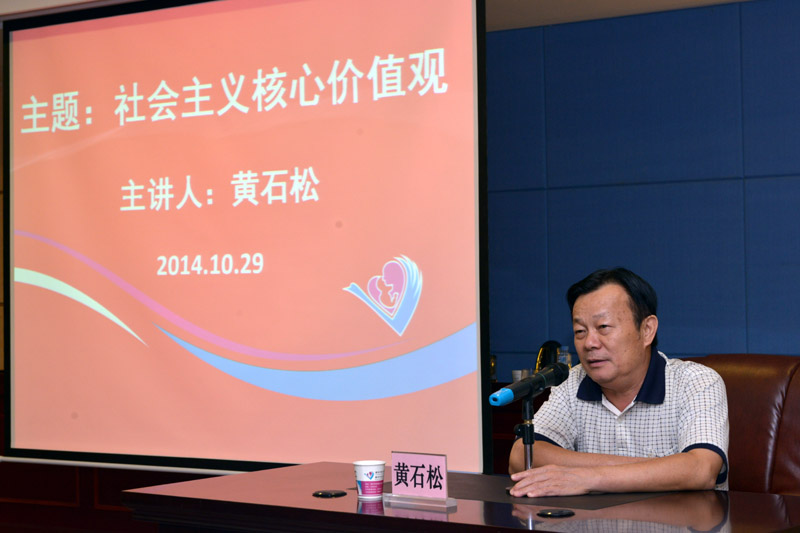 第二部分由黄石松同志为全体参会人员作坚守社会主义核心价值观专题辅导报告。他说,社会主义核心价值观是我国各族人民的精神家园,也符合十八大四中全会精神,依法治国必须与以德治国相结合。随后,他就如何理解社会主义核心价值观、如何践行社会主义核心价值观、如何树立社会主义核心价值观三个方面,全面而系统的阐述了坚守社会主义核心价值观的重要性及具体做法。