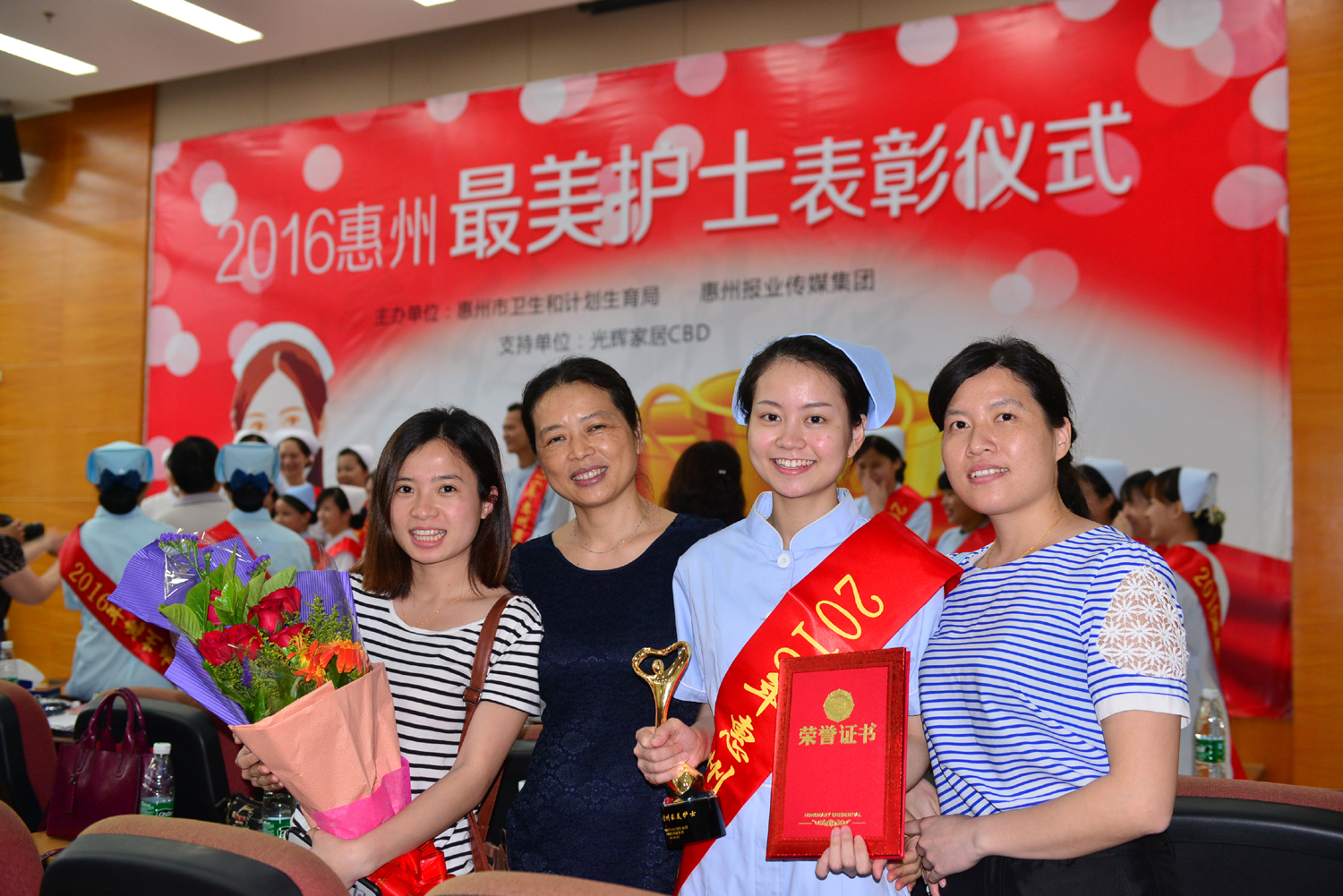 为充分发挥医疗卫生系统先进典型引领示范作用,构建和谐医患关系,市卫计局及惠州报业传媒集团联合主办2016年惠州最美护士评选活动,经过市民投票和专家评审,评出“最美护士”、“十佳护士”和“优秀护理”。我院新生儿科护士林仕英从全市数万名护士中脱颖而出荣膺“最美护士”称号。