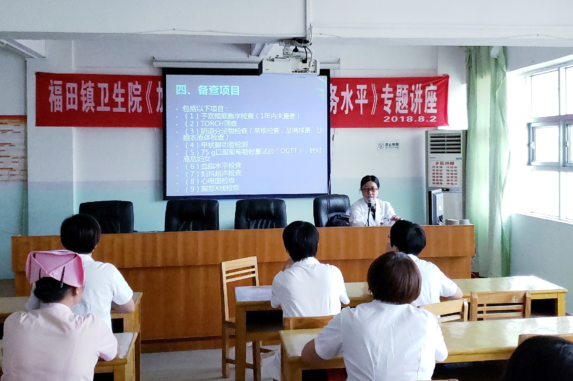 除义诊外,我院专家团队还进行了教学查房、疑难重症会诊、学术讲座等活动,产科主任陈平和产前诊断中心主任陈剑虹分别为福田镇卫生院医务人员进行授课。通过对口支援帮扶,进一步下沉优质医疗资源,在提供技术支持的同时,协助基层卫生院提升整体医疗服务水平,实现医联体的共同发展,切实解决群众看病难、看病贵等问题。