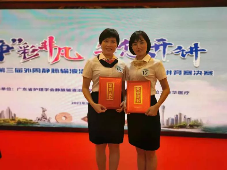在由广东省护理学会举办,主题为“‘静’彩非凡,等您开讲”——外周静脉输液治疗护理创新案例演讲竞赛中,我院新生儿科护士长黄丽婷荣获二等奖、产二区护士长赖婉君荣获三等奖。
