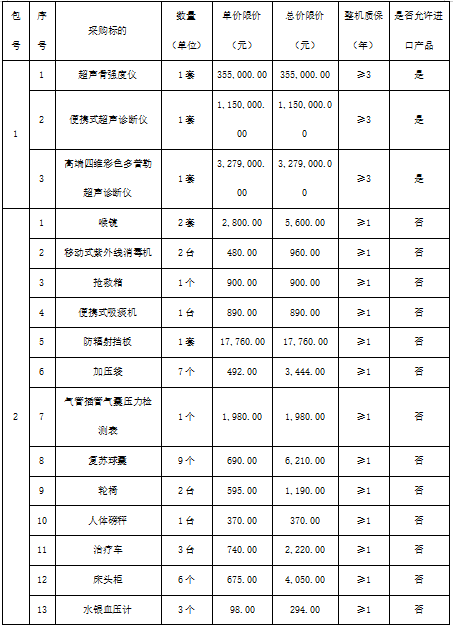 合同包2(母婴安全补短板项目第四批医疗设备及物资采购项目包2):