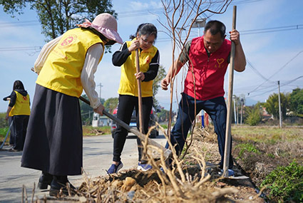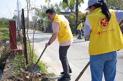 活动现场,潘文静带领党员志愿者前往横河镇百里绿道卢屋村小组段参加植树活动,与驻横河镇帮扶工作队队员们一同种植嘉宝果树苗约60棵。大家积极热情,分工合作,配合默契,干劲十足,有的培土、有的浇水……经过一番辛勤栽种,为横河镇绿道增添一道亮丽的风景线,为绿色乡村建设贡献一份力量。