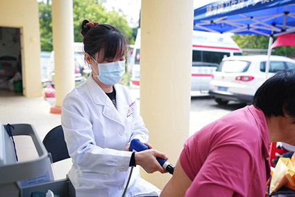 义诊现场,由我院内科、儿科、外科、中医科专家和护理志愿者组成的义诊团队,为群众提供常见病诊治和健康咨询服务、常见病筛查,还提供免费测血糖、量血压等服务,竭尽所能地为群众答疑解惑,并根据他们的身体状况,提供个性化的建议,志愿者们用通俗易懂的语言给予群众健康指导和知识宣教,其中,中医科的骨骼肌肉疼痛冲击波治疗为患者解决颈肩腰腿痛,深受群众的喜爱,吸引了一批老年人前来体验,根据季节变化,中医科还准备了自制的“防蚊”“防感”中医香囊200个,让大家亲身感受到中医的独特魅力和疗效。