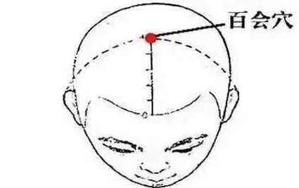 百会穴在两耳尖连线与头正中线相交凹陷处。按揉百会穴可疏通头部经气,醒脑开窍、缓解疲劳等作用。