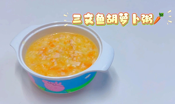 小贴士:粥的碳水化合物提供能量,搭配三文鱼中的维生素和胡萝卜膳食纤维,营养均衡。