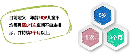 根据我国最新的诊断标准,如果≥5岁的儿童平均每月至少1晚夜间不能从睡眠中醒来而发生无意识的排尿,持续3个月以上,排除疲劳或临睡前饮水过多而偶发的情况,可以诊断为“遗尿症”,需要进行相应干预和治疗。