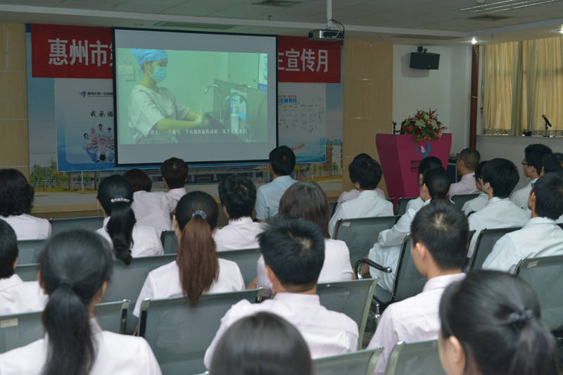 启动仪式之后播放了我院自制的手卫生宣教短片,并邀请了手卫生专职讲师进行了手卫生知识专题培训,讲座内容丰富,形象生动,使得手卫生知识更加深入人心,真正做到了人人响应、人人参与、人人知晓、人人掌握,全面提高洗手的依从性。